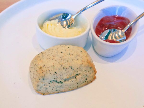 スコーンは、この日は紅茶でした。 たっぷりのクロテッドクリームと苺ジャムを付けたスコーンを頬張る時間は最高! アフタヌーンティーの醍醐味です。