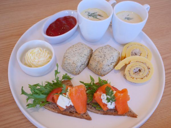 春のピクニック気分を味わえるセイボリーの美味しさも、ホテルクオリティの本格派。 サンドイッチにはスモークサーモン、サーモンのクリームスープ「ロヒケイト」にはディルと、北欧らしさがあふれていました。 「ロッドユールのロールオムレツ」は料理本「ムーミン谷のしあわせレシピ」に登場するメニューをヒントにしているのだそうです。