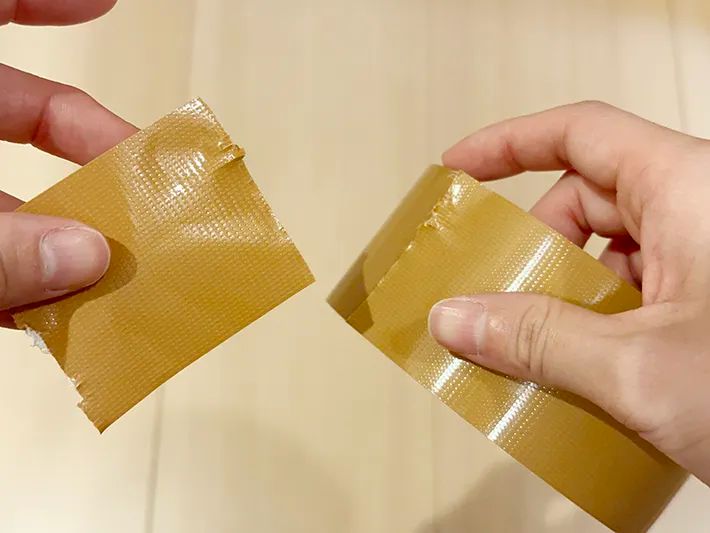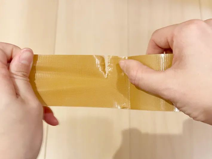 布テープに半分程度の切れ目を入れたら、左右に平行に引っ張りましょう。