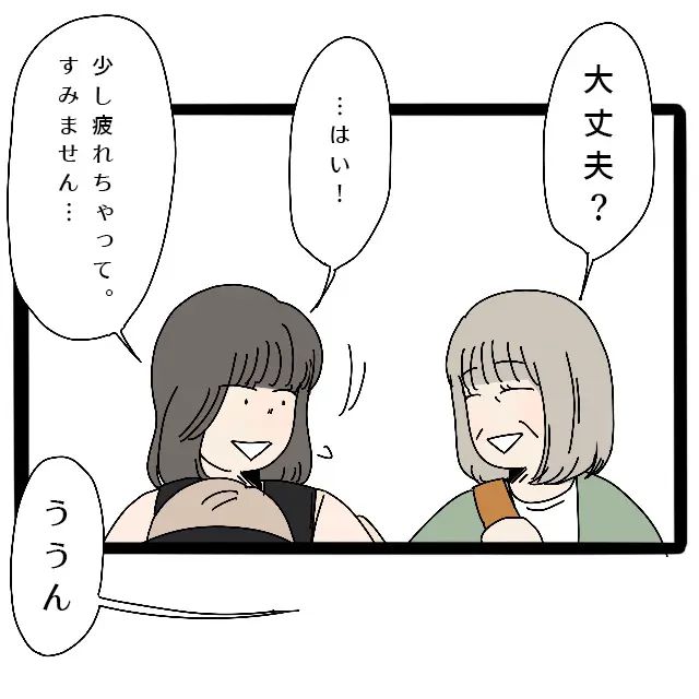 すると、さよさんはアオをあやしながら「ほら・・典ちゃん達とは同世代だし友達みたいなものだけど・・かなこさん気疲れしちゃうわよね。ずっと抱っこだし・・」と申し訳なさそうに言ったのです。この旅行中、私とアオのことを気にかけてもらえたのはこれが初めてでした。夫のコウタでさえ私がずっと一人でアオを抱っこしていることに気づいていなかったのに・・。