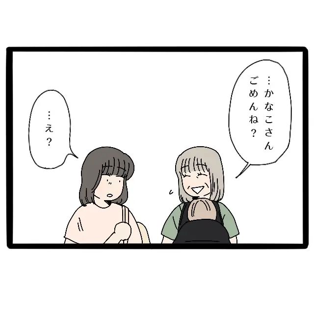 いつの間にか泣き止んでいたアオは、さよさんに抱っこされても泣くことはありませんでした。アオを抱いたさよさんと一緒に授乳できる場所に向かって歩き始めると、さよさんがおもむろに「・・かなこさん、ごめんね?」と謝って来ました。私はさよさんが謝る理由がわからず「・・え?」と困惑。