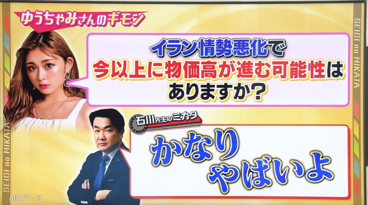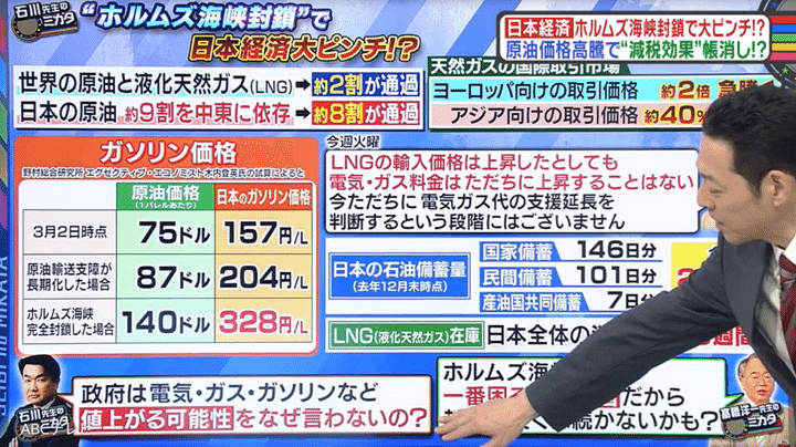 なお、中東情勢と情勢悪化が及ぼす日本経済への影響は、3月7日に生放送された情報バラエティ番組『教えて!ニュースライブ 正義のミカタ』(ABCテレビ)で取り上げられた。