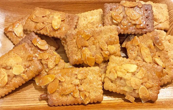 サクサクのクッキー生地の上に、コーティングされたアーモンドがのっており、コーヒーや紅茶によく合いますよね。