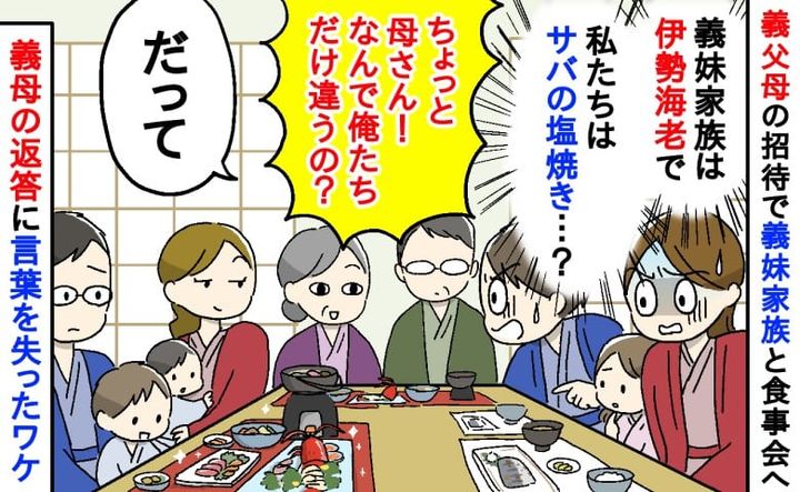 「義妹家族は伊勢海老、私たちはサバの塩焼き…」義妹家族と夕食で差別!?…夫が理由を尋ねた結果、義母の返答は