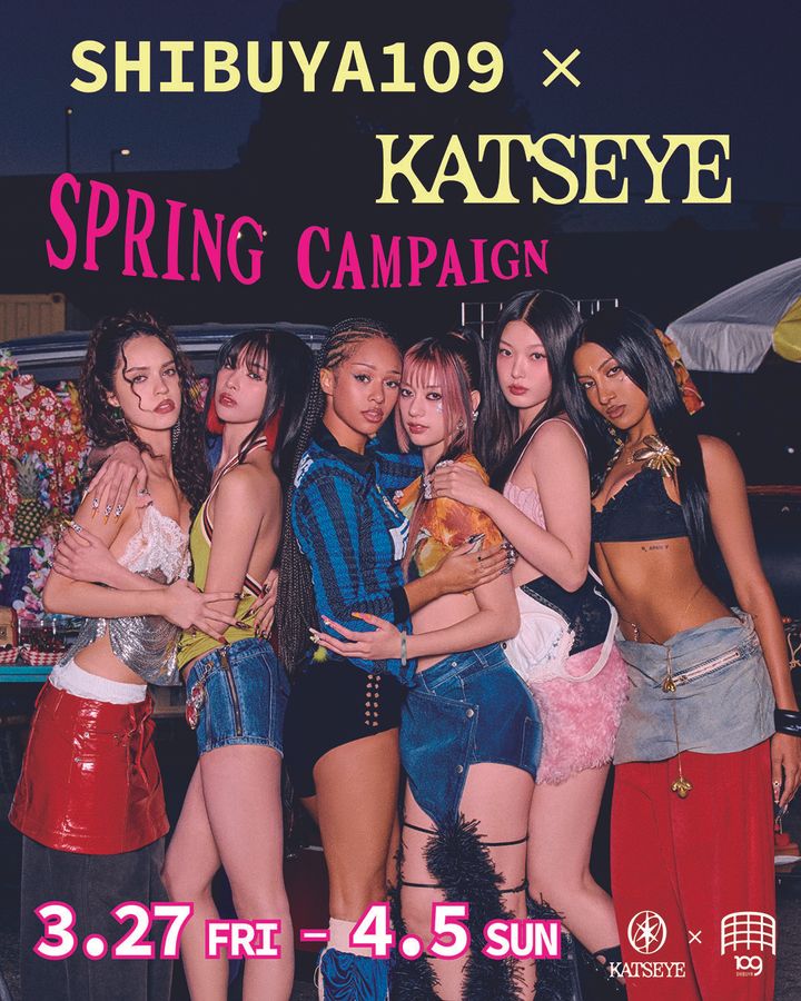 キャンペーン期間中は、SHIBUYA109渋谷店の館内外にKATSEYEのキャンペーンビジュアルが掲出され、訪れるだけで特別な空気感を味わえる演出が施される。春の渋谷を舞台に、音楽とファッション、カルチャーが交差する空間が生まれる。