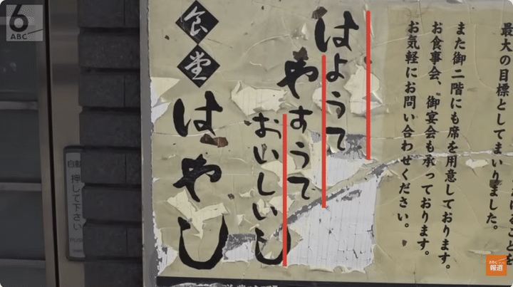 林さんには大切にしている言葉があります。それは、お店の看板に書かれた「“は”ようて、“や”すうて、おいしい“し”」。「はやし」の屋号にちなんだキャッチフレーズですが、「3つそろわんでも、何か1つでも(お客さんの心に)引っかってもらえたら」と林さん。