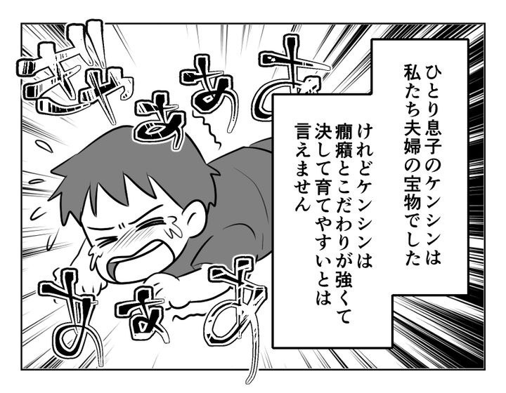 私(エツコ)は、夫とひとり息子のケンシンとの3人家族。夫は単身赴任中です。ケンシンは私の宝物です。ケンシンがこの世に生まれてきてくれて、心から感謝をしたい……そう思っています。しかしケンシンは決して育てやすい子ではありませんでした。こだわりは強いし癇癪も多い。ケンシンのことは大切なのに、ケンシンを育てていく自信がないのが現状でした。私はケンシンと一緒にいる日々を「辛い」と思うようになっていたのです……。