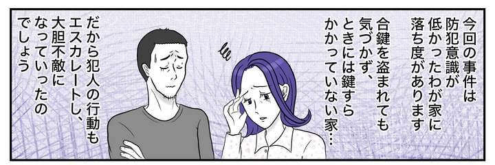今回のことは防犯意識の低かった私たち夫婦にも落ち度があると思います。