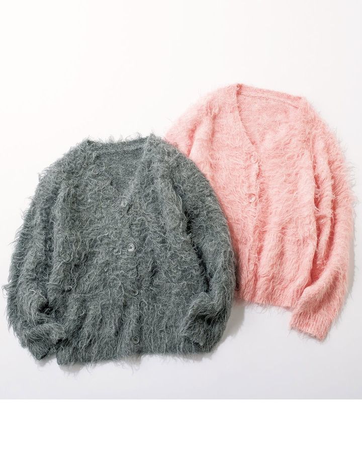③季節の変わり目に使える!デニムとも甘いスカートとも相性のいい「シャギーカーディガン」