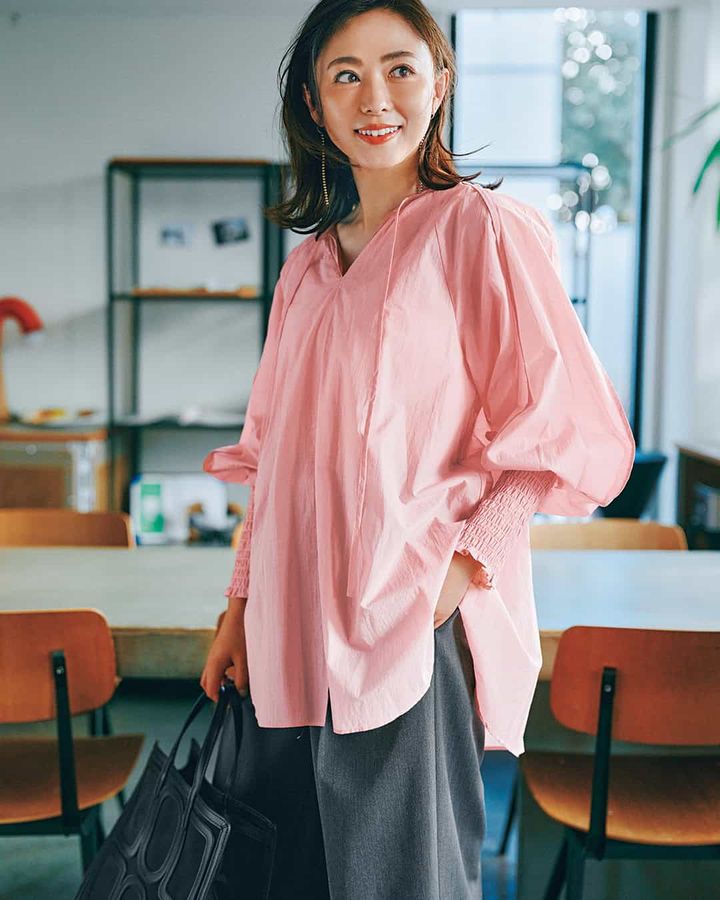 ⑤お仕事、学校行事、ランチ会etc.どんなシーンでも好感度な「甘めブラウス」