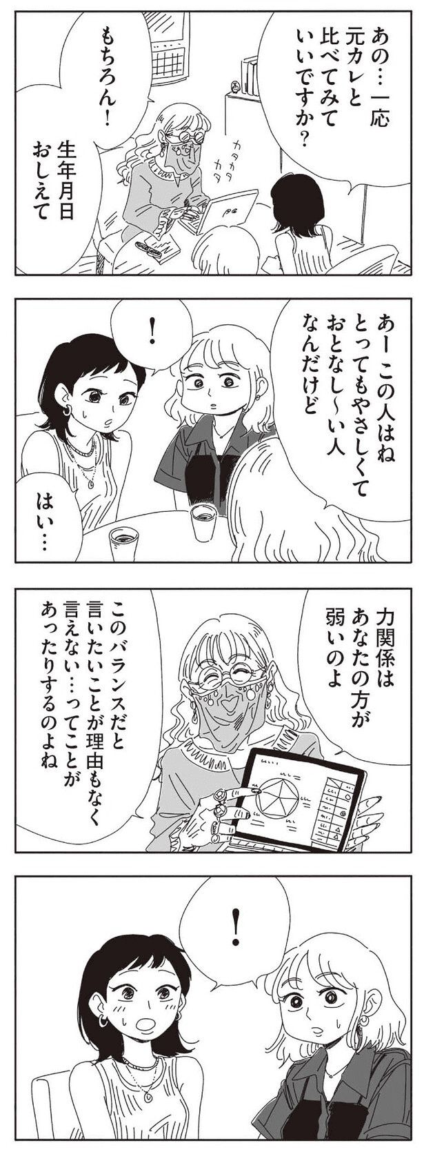 アラサー女子が占いへ。今カレと元カレそれぞれとの相性をみてもらうと?/20時過ぎの報告会5㊱