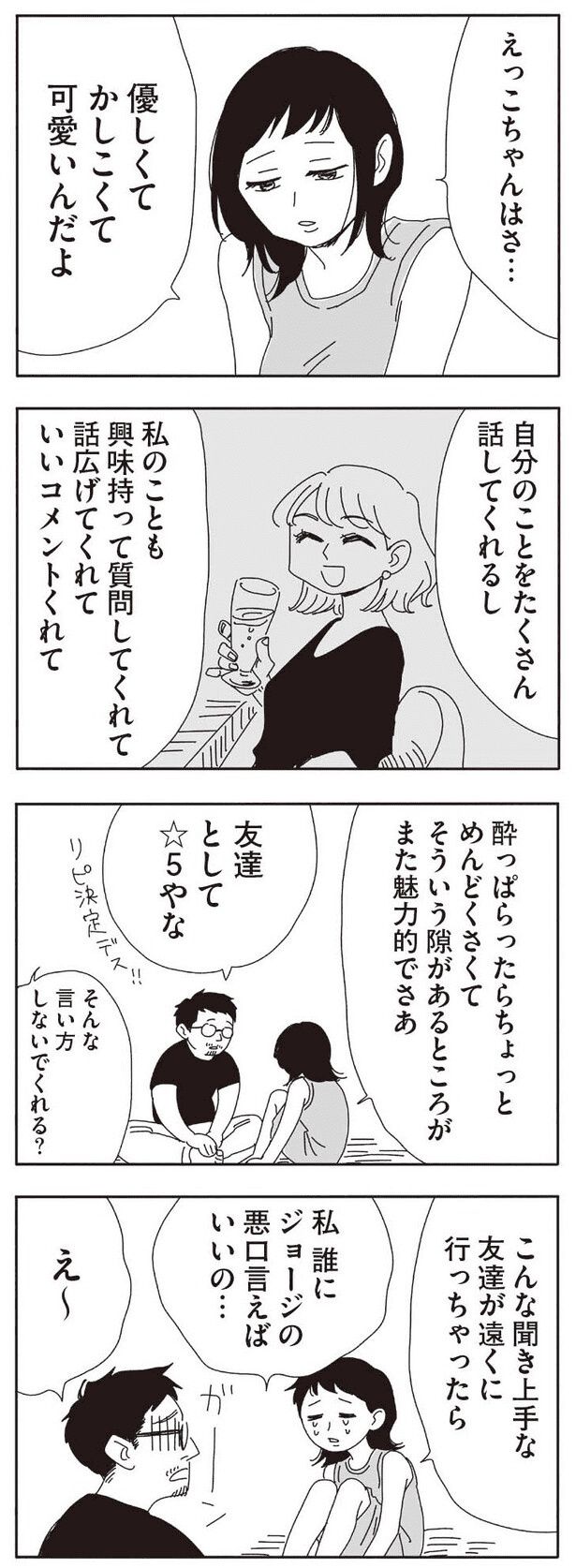 仕事を終えた20時過ぎに、それは始まる。なにげない、でも濃すぎるアラサー女子たちの報告会。慎重派なこはる、短期決戦の女りさこ、バランサーのきみちゃん他、アラサー女子たちの悩みは今日も尽きない——。「妊活」「結婚生活の不満」「パートナーとの日常生活」など、たくさん悩んで、たくさん話して、決断を迫られる彼女たちに共感したりハッとさせられること間違いなし! アラサー女子のリアルが詰まった赤裸々話が盛りだくさんの大人気ガールズトーク漫画『20時過ぎの報告会』(1~5巻)。大好評だった1~4巻に続いて、2月18日発売の最新刊5巻から、新たなエピソードをお届けします。