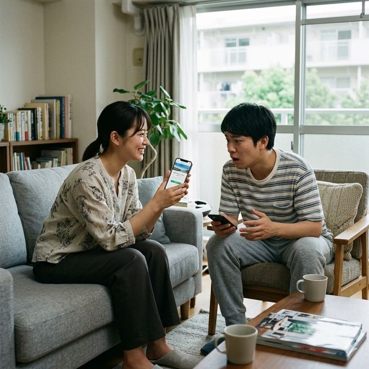 私はその場で自分のスマホを操作し、彼に笑顔で画面を見せました。