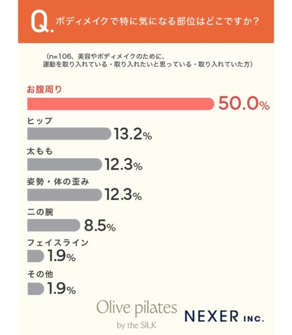 NEXERはこのほど、マシン専門ピラティススタジオ「Olive pilates」と共同で、全国の女性200名を対象に「女性の美容・ボディメイクと運動」についてのアンケートを行いました。
