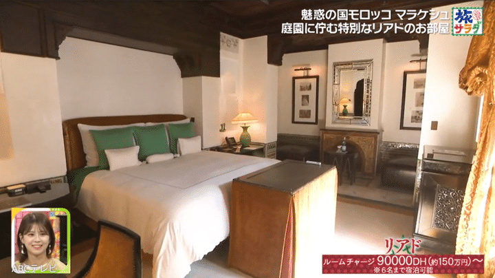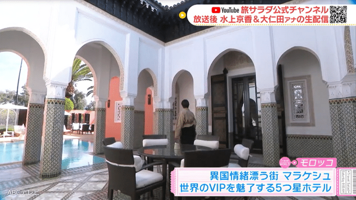 「朝ドラ」ことNHK連続テレビ小説に出演したあの女優が、旅バラエティ番組『朝だ!生です旅サラダ』(ABCテレビ)のロケでモロッコへ! ラグジュアリーホテルのスパでサウナやマッサージを体験して、癒しのひと時を過ごした。