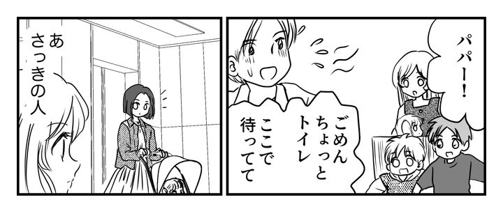 旦那のトイレ待ちをしていると、さっき2階でエレベーター待ちをしているときに嫌味を言ってきた人とまた会ってしまいました。そして彼女は私の存在に気がつくと、私に聞こえるようにまた文句を言っています。内容的に、明らかに私のこと。子どもの前で言いたい放題です。
