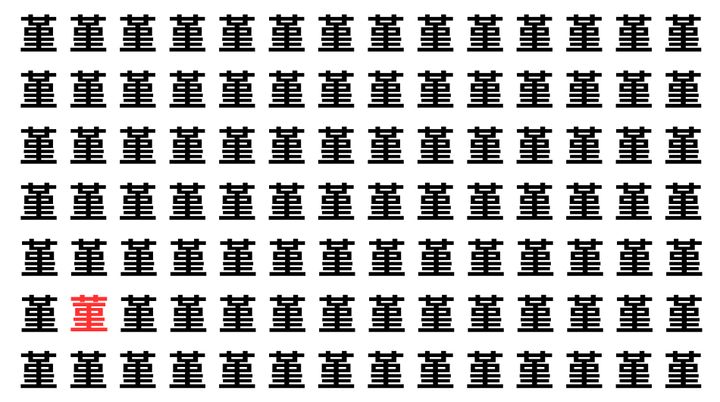 たくさんの「堇」の中に、よく似た別の漢字が1文字だけ隠れています。