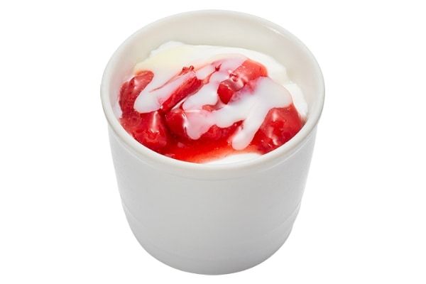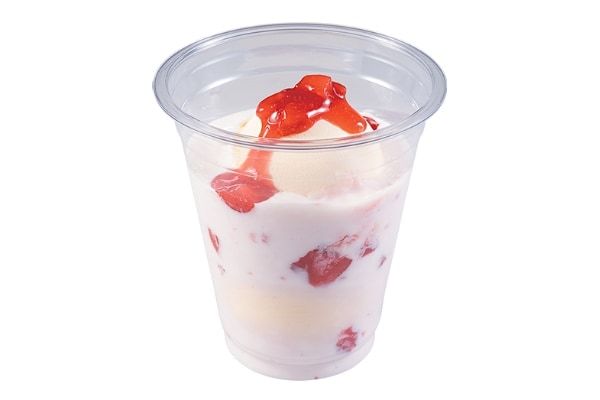 「いちご練乳の杏仁豆腐」(330円~)は、香り・味・質感にこだわり独自配合でブレンドした杏仁豆腐です。果肉感のあるストロベリーソースと北海道産練乳を重ね、甘酸っぱさとコクのある甘みが調和する味わいに仕上げています。