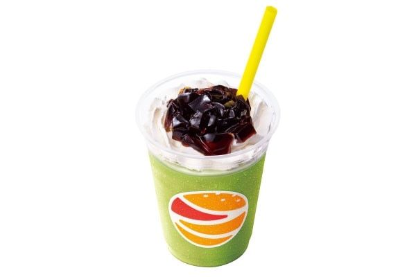 「黒糖ゼリー&抹茶パフェシェーキ」は、抹茶を使用したシェーキに、ホイップクリームと沖縄県産黒糖を使用した黒糖ゼリーをトッピングし、和風に仕立てています。