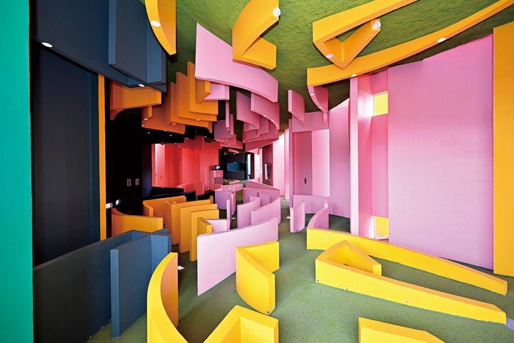水平や垂直の線を排除し、人工的な地平線を配するなど、人間の平衡感覚や遠近感を混乱させる仕かけが満載だ。岐阜県の形をした屋根と迷路のような回廊から成る《極限で似るものの家》は、パークのメインパビリオン。天井には1階部分を反転させた世界が広がる。