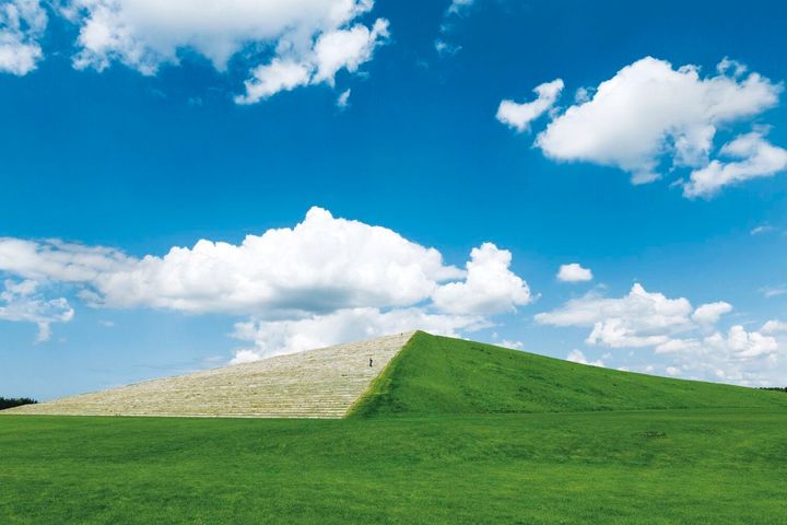 「公園全体をひとつの彫刻作品に」というコンセプトのもと、彫刻家イサム・ノグチが設計した札幌市の総合公園。山頂に続く5つのルートがあり、10分ほどで登れる公園最大の造形物である美しい三角形の《モエレ山》、芝生のマウンドからモニュメントを仰ぎ見る《テトラマウンド》、公園のランドスケープと一体化する建築物《ガラスのピラミッド“HIDAMARI”》など見どころが点在。広大な自然に包まれ、まるで彫刻の上を散策しているような気分に浸れる。