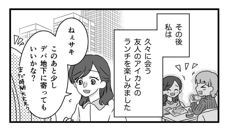 夫と話し込んでしまい、待ち合わせの時間ギリギリになってしまいました。子どもが帰宅する16時までには家に帰らなければいけません。アイカとランチをするのも久しぶりだし、ゆっくり話もしたいので、どう考えても、この時期の混雑したデパ地下に寄る暇なんてないのです。