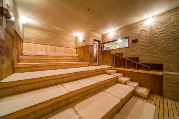 ロウリュウサウナでは、定期的に発生する蒸気と熱波でしっかり汗をかくことができます。