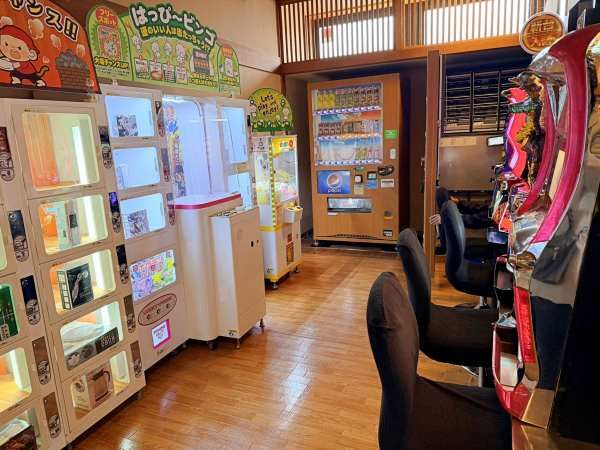 ゲームコーナーや売店もあり、家族連れでも楽しめる雰囲気。売店には春日部の名産品も並んでいました。