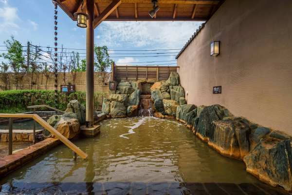 平成16年12月に地下1,500mから湧出した温泉は、毎分320Lと湧出量が豊富。pH7.3、湧出温度43℃の成分をもつお湯です。露天風呂の「源泉の湯」では、温泉(冬季のみ加温)をかけ流しで楽しめます。※循環は行っていない浴槽です。十分な湧出量を活かし、気候に応じて温度調整されているとのこと。