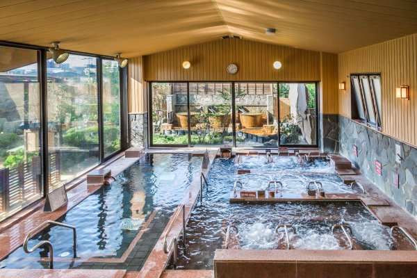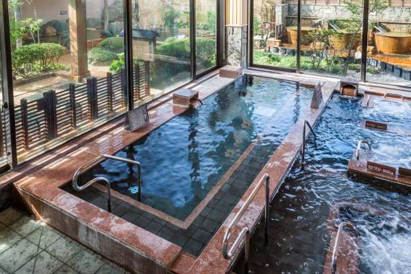 内湯には「高濃度炭酸泉(加温循環式)」をはじめ、ジェットバスやスーパージェットバスなど多彩な浴槽がそろっています。炭酸泉はやわらかな入り心地で、ゆったり浸かるのにぴったり。ジェットバスは水流の刺激が心地よく、気分転換にも◎。