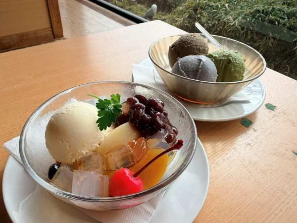 館内のお食事処は、和食・麺類・韓国料理・デザートまで幅広いラインナップ。 今回は天ぷらうどんと石焼き豚キムチご飯、さらにトリプルジェラートとクリームあんみつまで満喫。