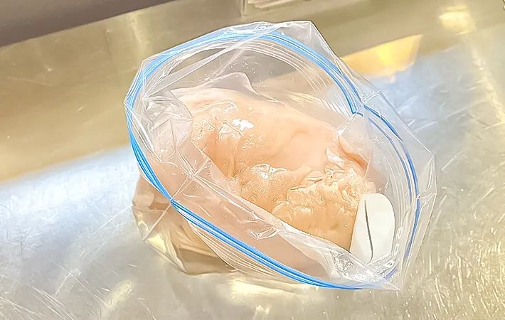 鶏むね肉なら4時間から一晩ほど漬けておくと、中までしっかりと水分が行き渡ります。