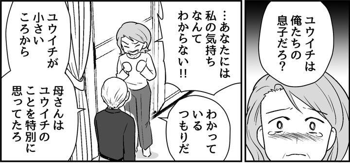 感傷的になる私に、夫は冷静に話しかけます。「ユウイチは母さんにとって、特別な存在だったんだよな。下の2人がまだ幼かったころ、俺はちょうど仕事で飛び回っていたから……。そのときにユウイチが寄り添ってくれたんだよな」