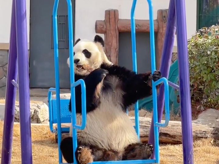 ブランコに揺られて竹をムシャムシャ。優雅すぎるランチタイムに癒やされる