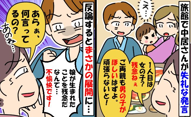 3. 旅館の仲居さん「女の子なの?残念、男の子産まないと」はぁ?夫が怒るとなぜかニヤリ…驚きの展開に