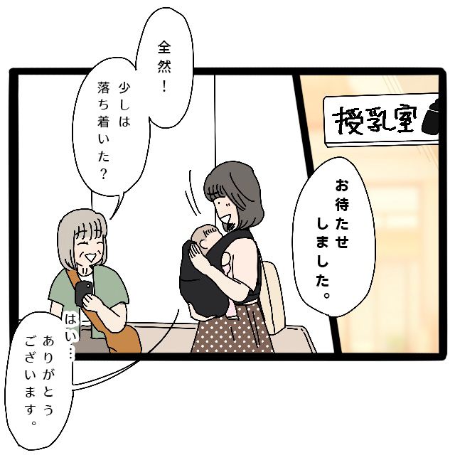 アオの授乳を終えて授乳室を出ると、「少しは落ち着いた?」と明るく迎えてくれたさよさん。