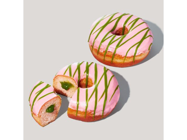 桜のほのかな香りと甘み、抹茶クリームの深い風味を楽しめる、春の訪れにぴったりのドーナツです。ふんわりと桜香るドーナツ生地に抹茶クリームを入れ、桜と抹茶のコーディングで春らしい華やかさに仕上げました。微かな塩味を感じる桜のほんのり甘い風味とコク深い抹茶風味が好相性です。