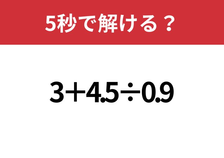 実は一瞬で解ける!「3+4.5÷0.9」5秒で解ける?