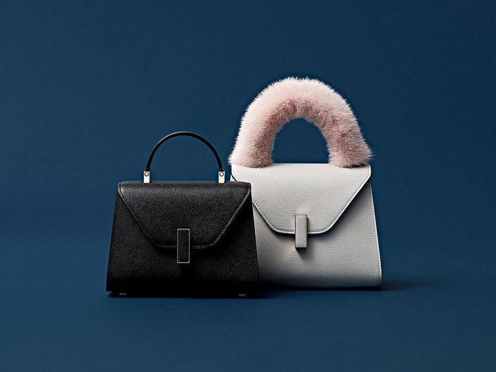 〈右から〉バッグ「ミニ イジィデ」〔H16×W22×D12㎝、ショルダーストラップ付き〕¥594,000ハンドルカバー¥96,800バッグ「マイクロ イジィデ」〔H14×W19.5×D9.5㎝、ショルダーストラップ付き〕¥528,000(すべてヴァレクストラ/ヴァレクストラ ジャパン)