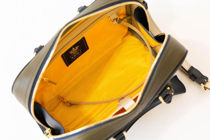 さりげない華やかさが魅力のバイカラー。上質で傷の目立たないシュリンクレザーを使用し、長く愛用するのにぴったり。ショルダーストラップつきで持ち方も自在。