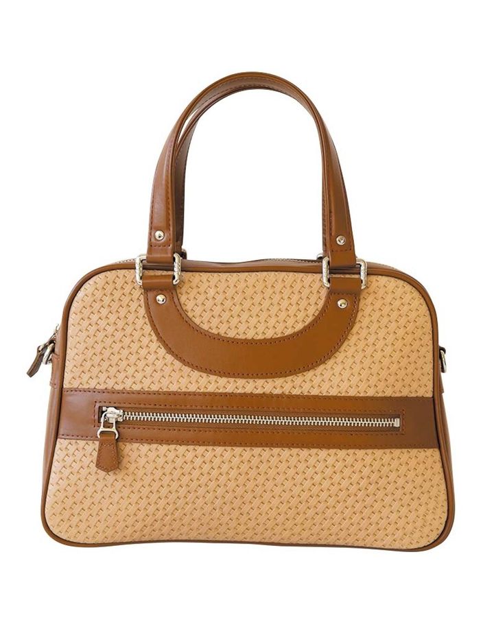 パリ発のブランド「ジャック・ル・コー」の名品「リスボン」。機能的で美しいフォルムが魅力。レザーを編み込んだような型押し素材は、どんな着こなしにも上品さと抜け感をプラス。斜め掛けもできるショルダーストラップつき。