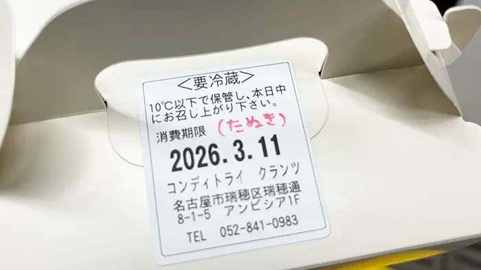 ケーキの箱に貼られたシールには、手書きの『(たぬき)』という文字が。