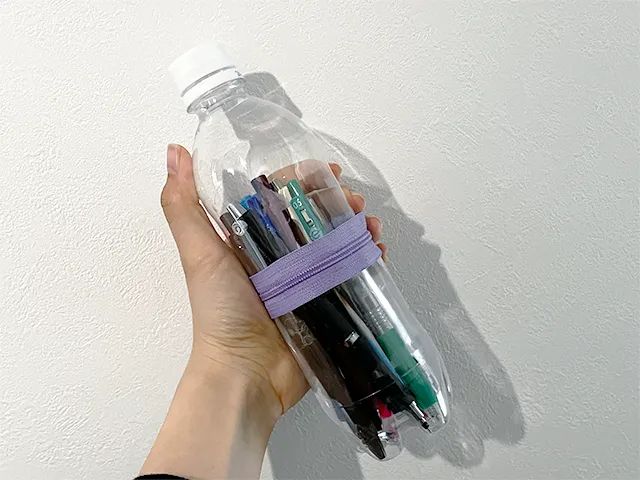 ペットボトルの長さが約22cmなので、さまざまな種類のペンを入れられます。