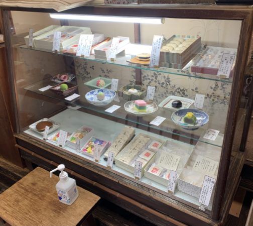 引き戸を開けると、すぐにショーケース。 お行儀よく並んだ和菓子が出迎えてくれました。