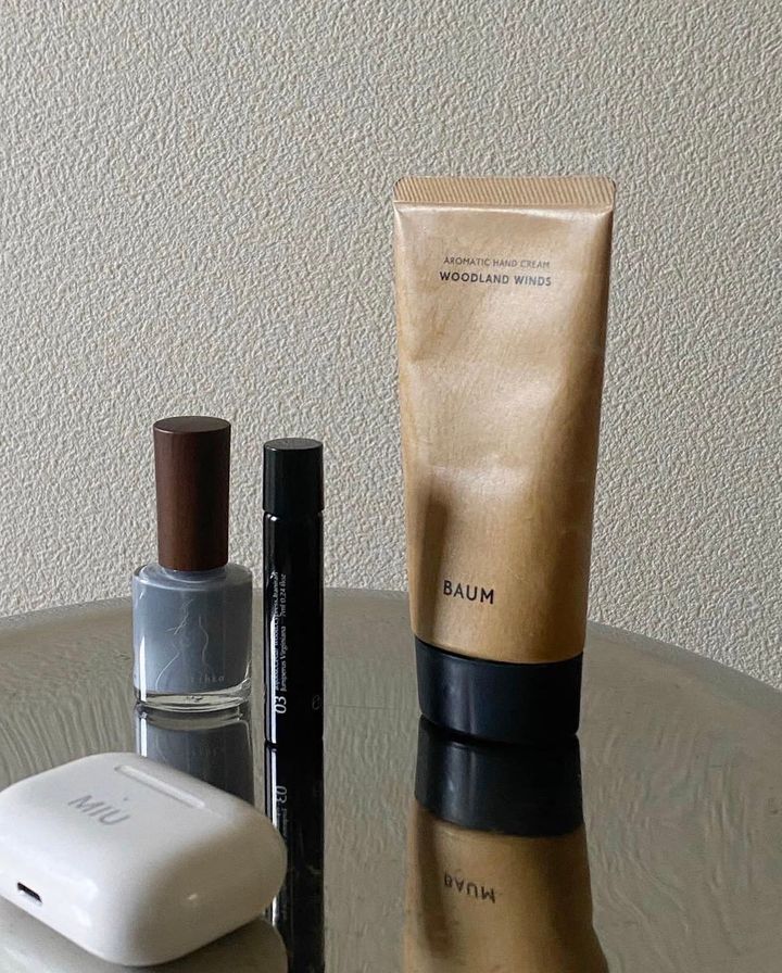 また、バウム(BAUM)のプロダクトも愛用しています。森林の課題に向き合っているブランドの姿勢も含めて、香りや質感がとても素晴らしいと思っていて、ハンドクリームやオイルローションは何年も使っています。ウッドのフレームがついたパッケージも可愛くて気に入っています。