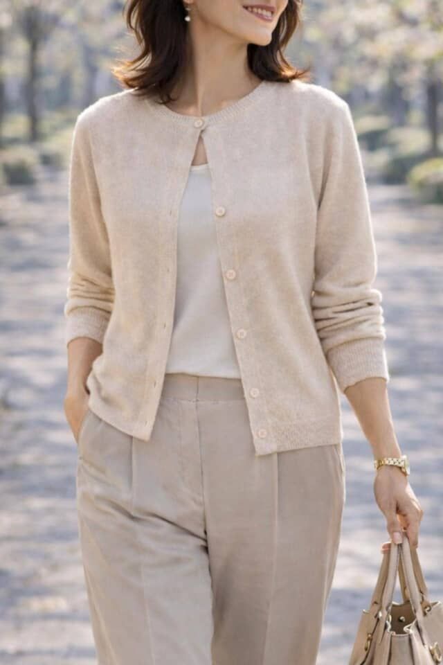 春になると出番が増えるカーディガン。軽く羽織れる便利なアイテムですが、「なんとなく普通に見える」「少しだけ野暮ったい気がする」と感じることもあるかもしれません。実は、カーディガンの印象を左右するのはシルエットだけではなく、“ボタンの留め方”。同じ1枚でも、ボタンの使い方を少し変えるだけで雰囲気は大きく変わります。そこで今回は、大人世代が取り入れやすいカーディガンの着こなしのコツをチェックしてみましょう。
