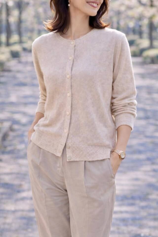 【40代・50代】アカ抜けの鍵は「ボタンの留め方」。カーディガンをおしゃれに着こなすコツ