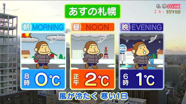 あす12日(木)の札幌です!朝昼晩の天気をもんすけでお伝えします!