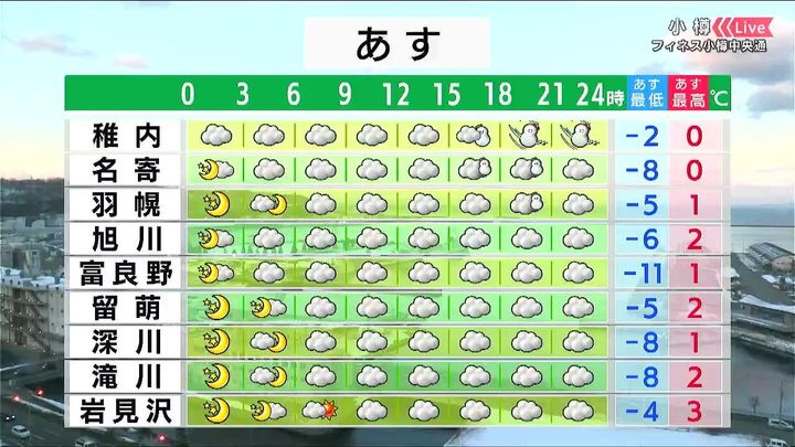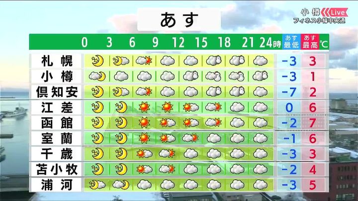 ・あすの札幌の朝昼晩の天気