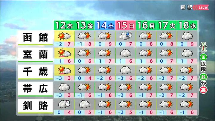12日(木)からの週間天気予報